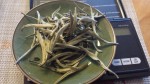 I will give What-Cha this: their comment about this silver needle tea having notes of sweet corn is accurate. It really does smell like an ear of corn! However, the leaf itself doesn’t look quite as impressive as the tea from Yunnan Sourcing. Where the former’s tea looked like leaf buds on steroids, What-Cha’s silver needle tea looks more like grass clippings: short, somewhat jagged, and a pale white-green.