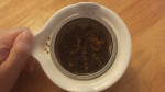 I’ve had one or two teas before that tasted like chysanthemums, so I thought I was prepared for this tea. Oh, how wrong I was! The chrysanthemum flavour in this tea is pungent, and medicinal. The tea flavour itself is fairly weak, taking a back seat so that the chrysanthemum can drive. Overall, the tea feels quite thin and dry in my mouth, with a sensation of camphor and cedar being most prominent. The brewed tea was a deep reddish brown, like brandy.